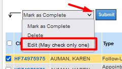 - If you edit or delete a recall on the recall list, editing the follow-up in the encounter will create a duplicate follow-up on the recall list. This use case should be rare, but is possible.