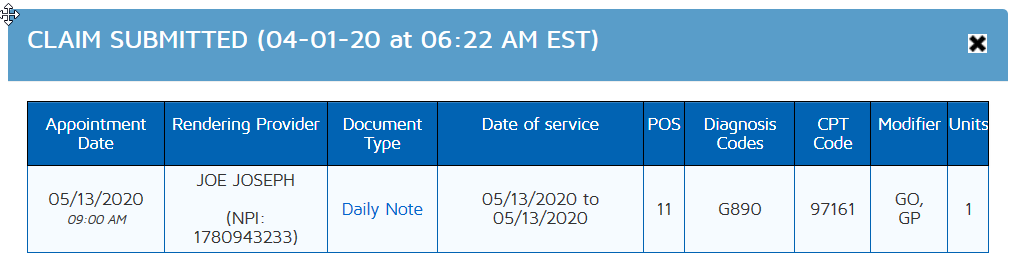 Once the system is able to display the information, the user can view the information that appears exactly on the Claim Review section when the clinician finalized the document