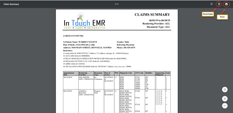 The user will have the option to print or download the claim information in a PDF format by clicking the Export Summary Button
