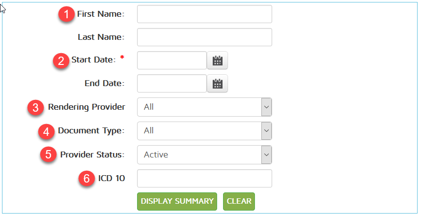 - Provider status - filter the result to show only documents finalized by a provider that is either active or Inactive