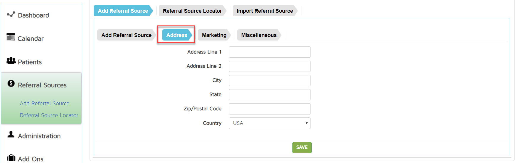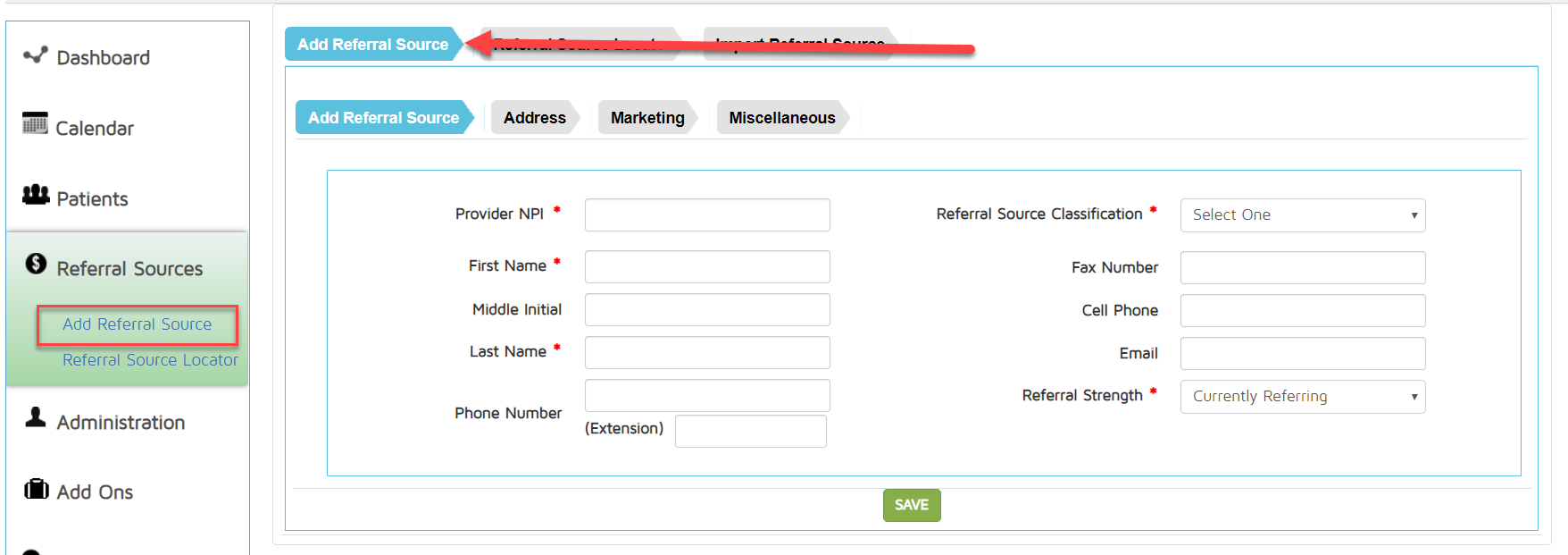 - Go to Referral Sources.