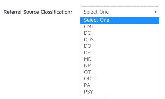 - Classification - Choose from the drop-down list what type of doctor specialization was assigned to the referral resources.