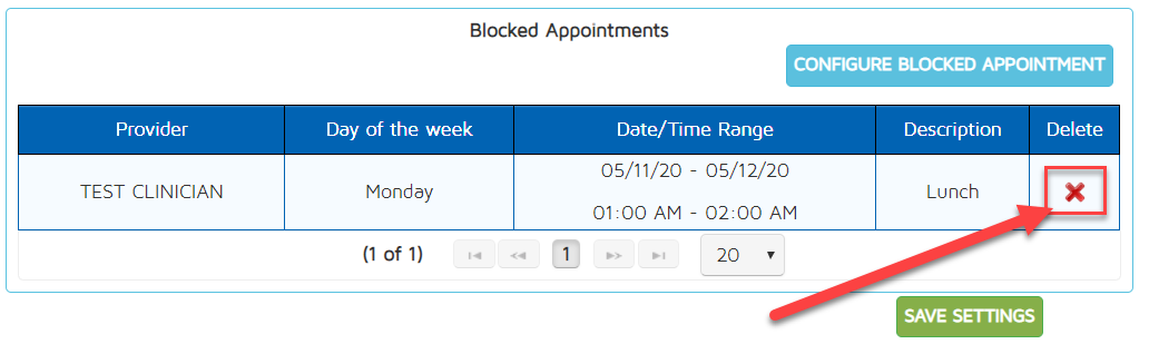 This will allow you to block time periods for that set configuration. To set this, click on Configure Blocked Appointment