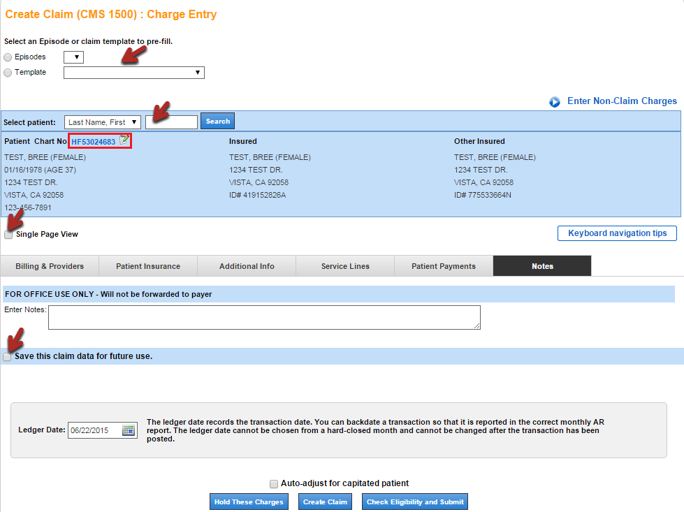 Click Enter to navigate to Charge Entry to create the claim.