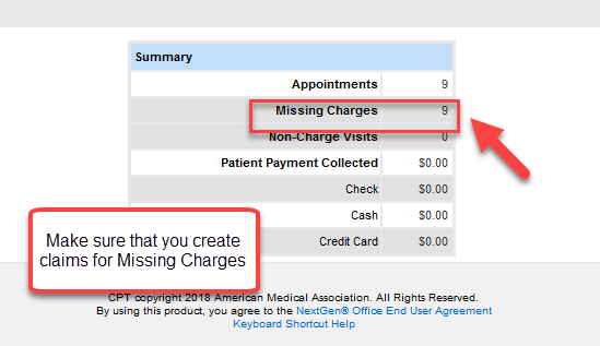 - Missing Charges: the number of appointments without a claim created.