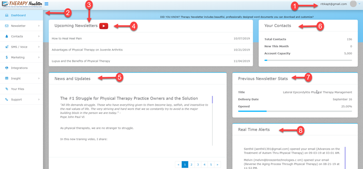 When the user logs in to Therapy Newsletter, it will automatically direct the user to the dashboard.