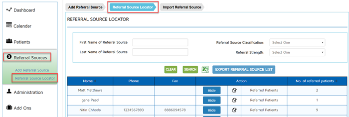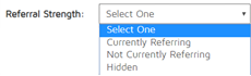 - Referral Strength - Choose from the drop-down list to filter the list based on whether the Referring Provider is currently Referring, Not Referring, or Hidden.