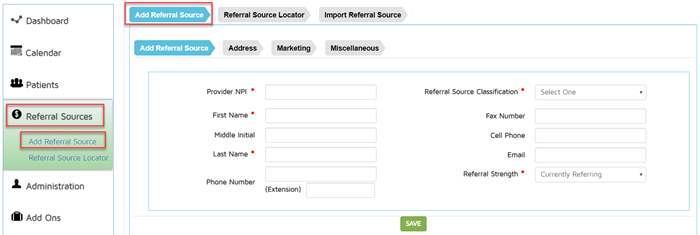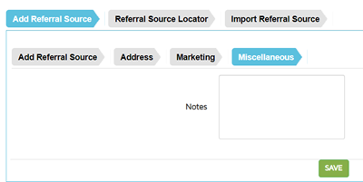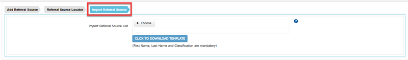 In the Import Referral Source tab, the users will have the ability to upload a whole list of referral sources to their account. This makes it easy to upload a list in bulk.