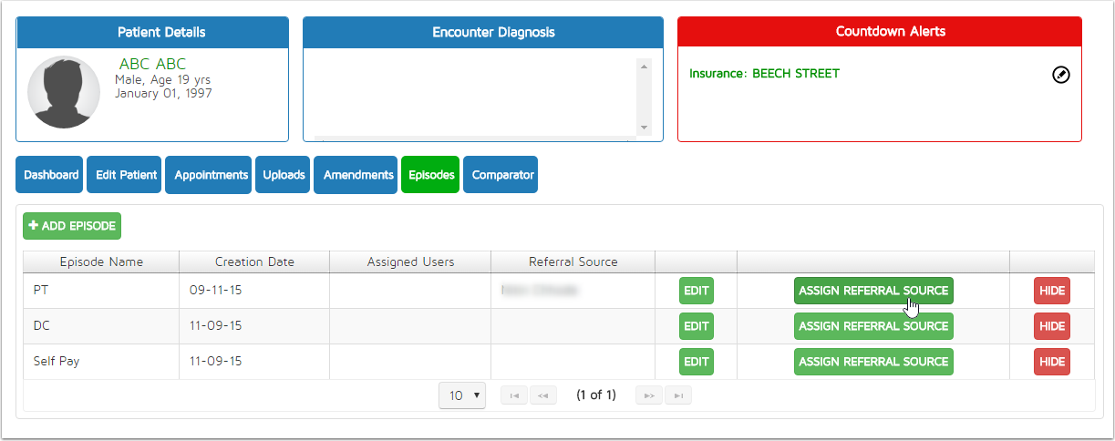 Users also have the ability to assign different Referral Resources to each episode. Click here to review the lesson on how to assign a Referral Resource to an episode
