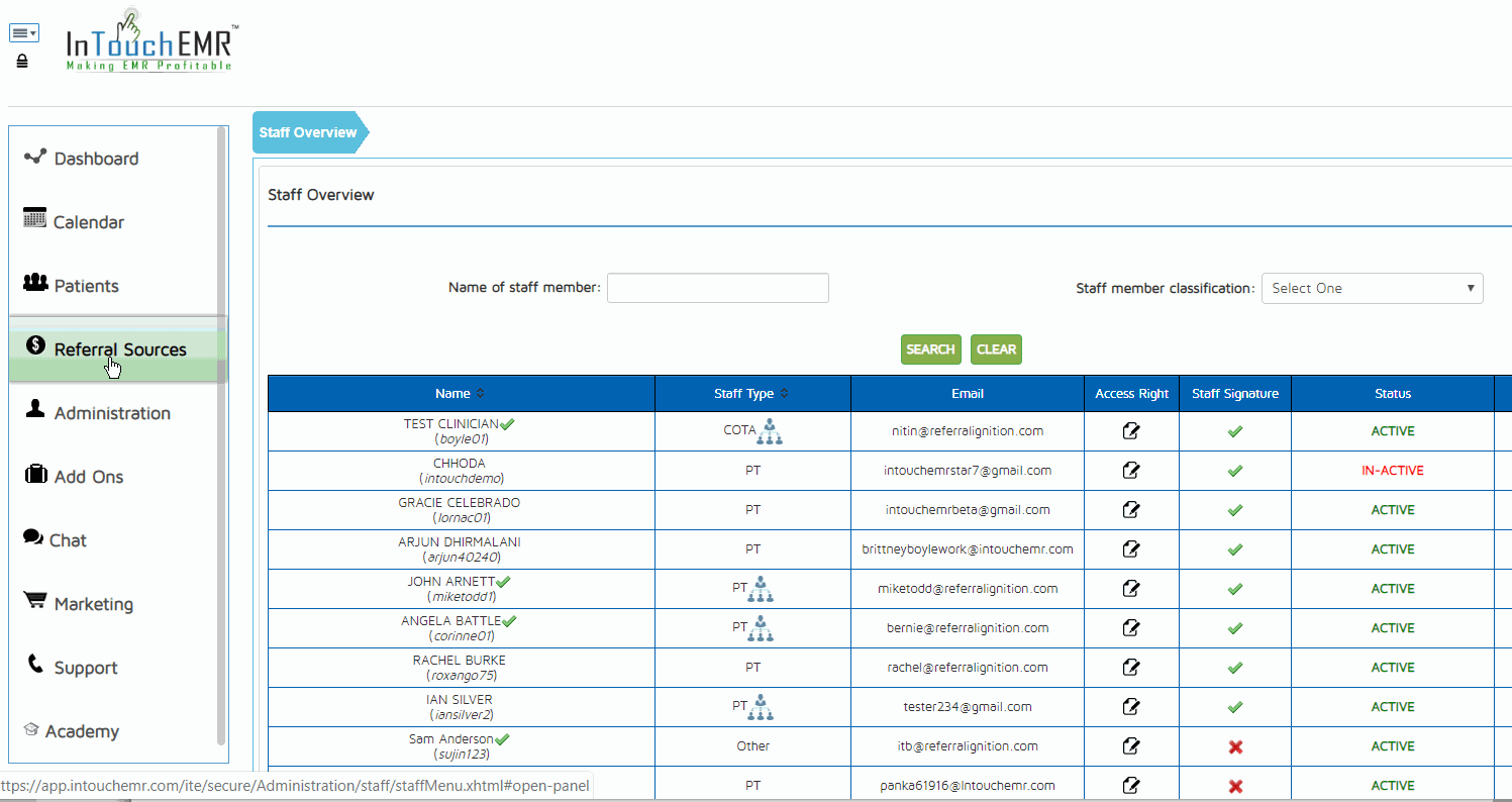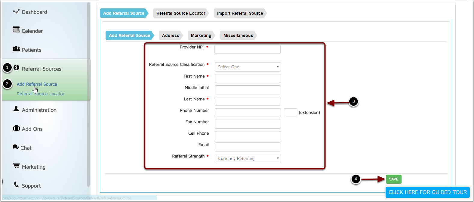 To manually enter the referring physician's information, log in to In Touch EMR and follow these steps:
