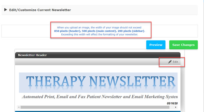 Click on Newsletter to go back to the newsletter header section and click on the pencil icon.