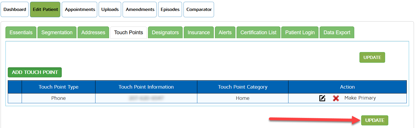 IMPORTANT : You will be brought back to the Touch Point page, click UPDATE again to make sure that all changes are saved.