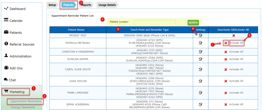 - Activate All - As long as the patient has a touch point saved (Email, phone number) they will automatically get signed up for all types of appointment reminders.