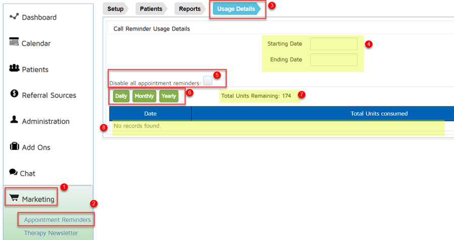 To view how many appointment reminder credits you have remaining and how much have been used, you can go to the Usage Details.