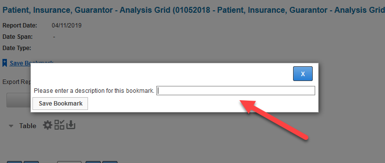 Once report is up, click on Save Bookmark > Enter the new description/Title of the report > Save Bookmark.