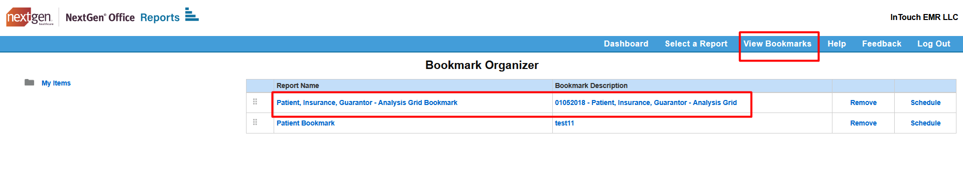 - Bookmarks are shared across the practice. You only see bookmarks for reports that you have permissions to.